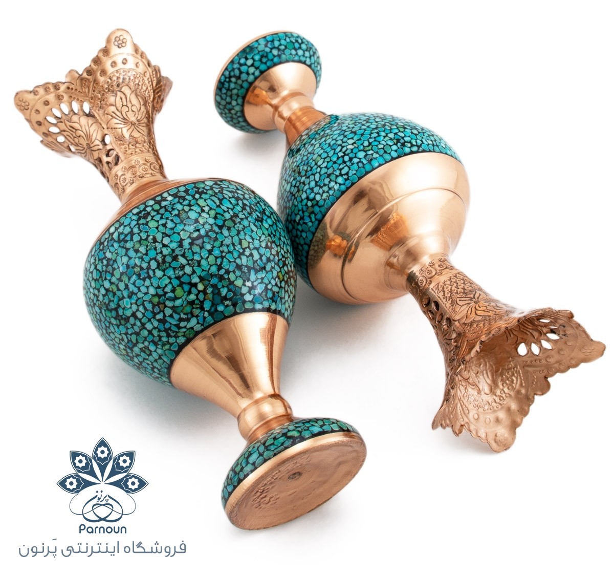 سنبلدان مسی، فیروزه کوب شده با مرغوب ترین سنگهای فیروزه نیشابور دارای 10 سال ضمانت کیفیت، هنر دست هنرمندان خوش ذوق اصفهان