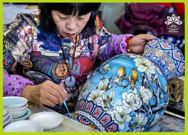 این رشته را میتوان از نظر وسعت دامنهی تولید، تنوع و زیبایی محصولات آن مهمترین رشتهی صنایعدستی چین محسوب نمود که در شهر پکن تولید میشود. فرآوردههای تولید شده شامل انواع ظروف تزئینی، گلدان تزئینی، مجسمه و زیورآلات میباشد.