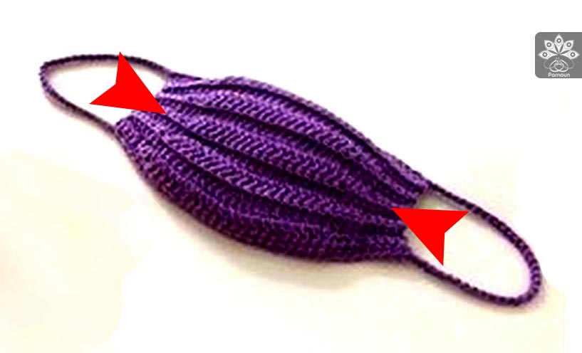 نکته: در صورتی که تمایلی به استفاده از کش ندارید، میتوانید به جای آنها از بندهای زنجیرهای که خودتان میبافید استفاده کنید و دو طرف آن را طبق تصویر 3 به ماسک متصل نمائید.
