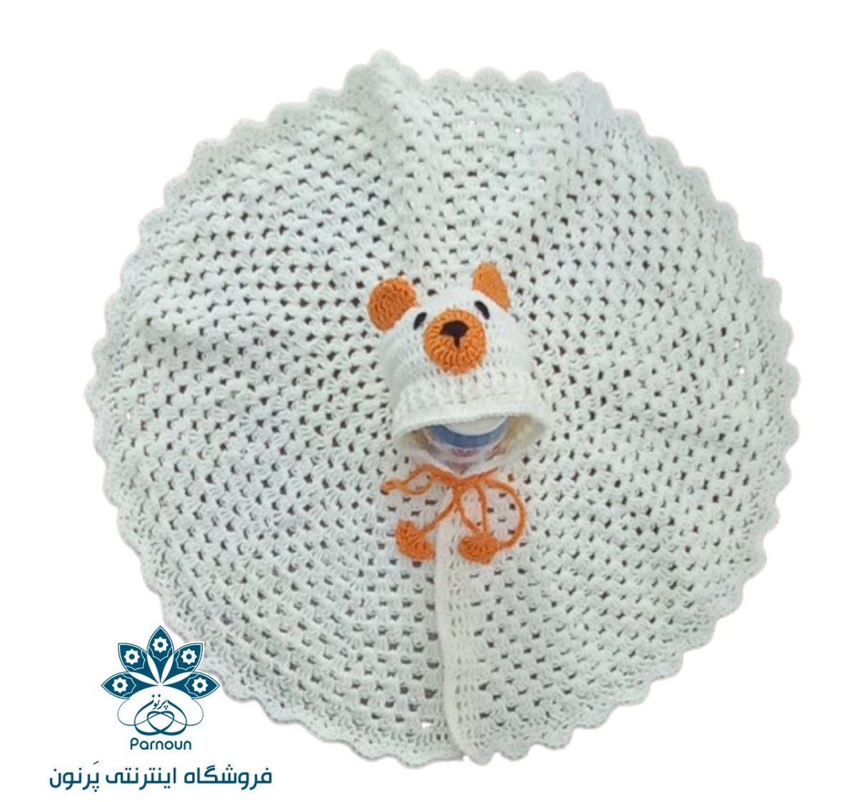 شنل قلاب بافی با رنگ سفید و نارنجی