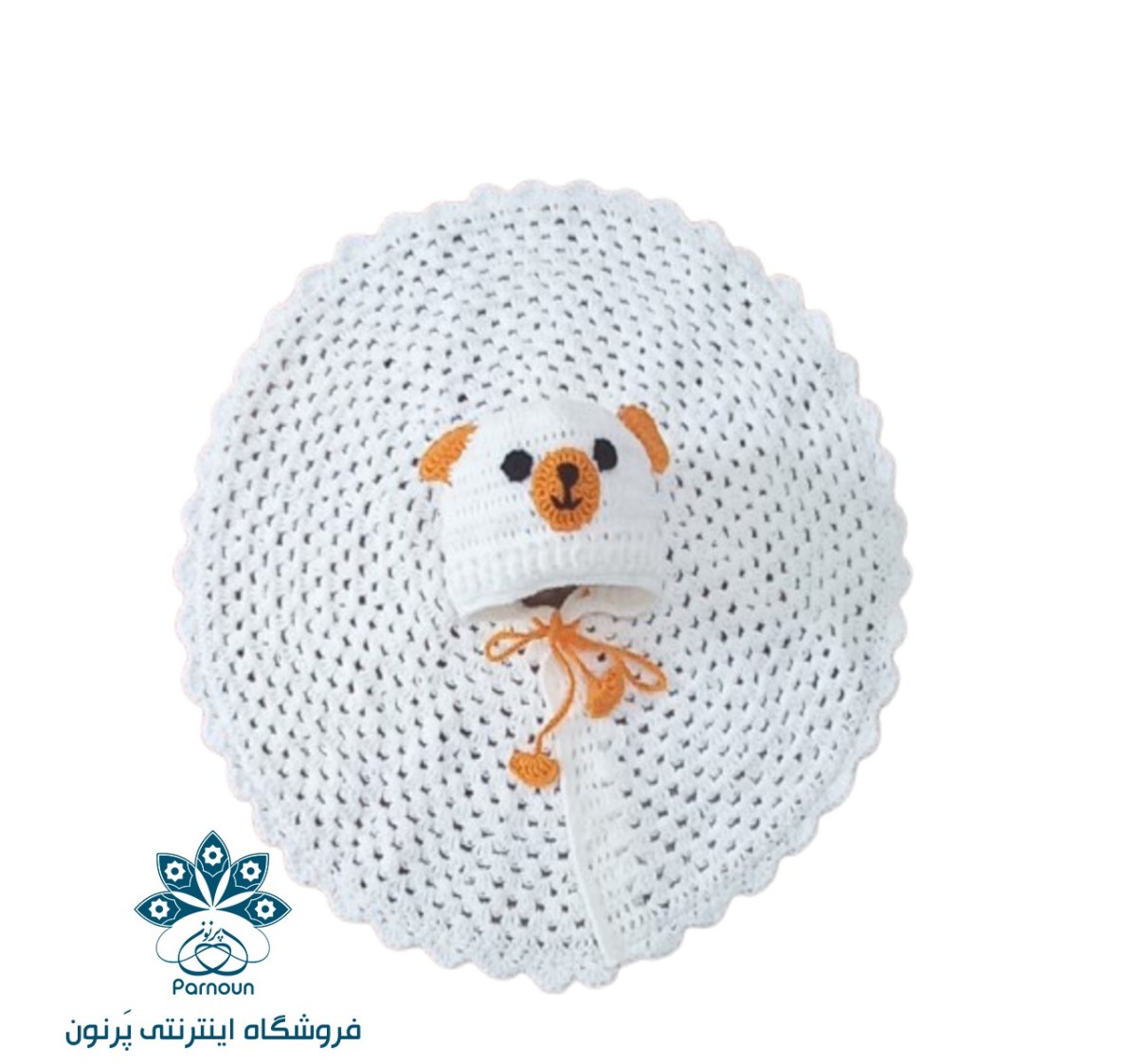 شنل قلاب بافی با رنگ سفید و نارنجی
