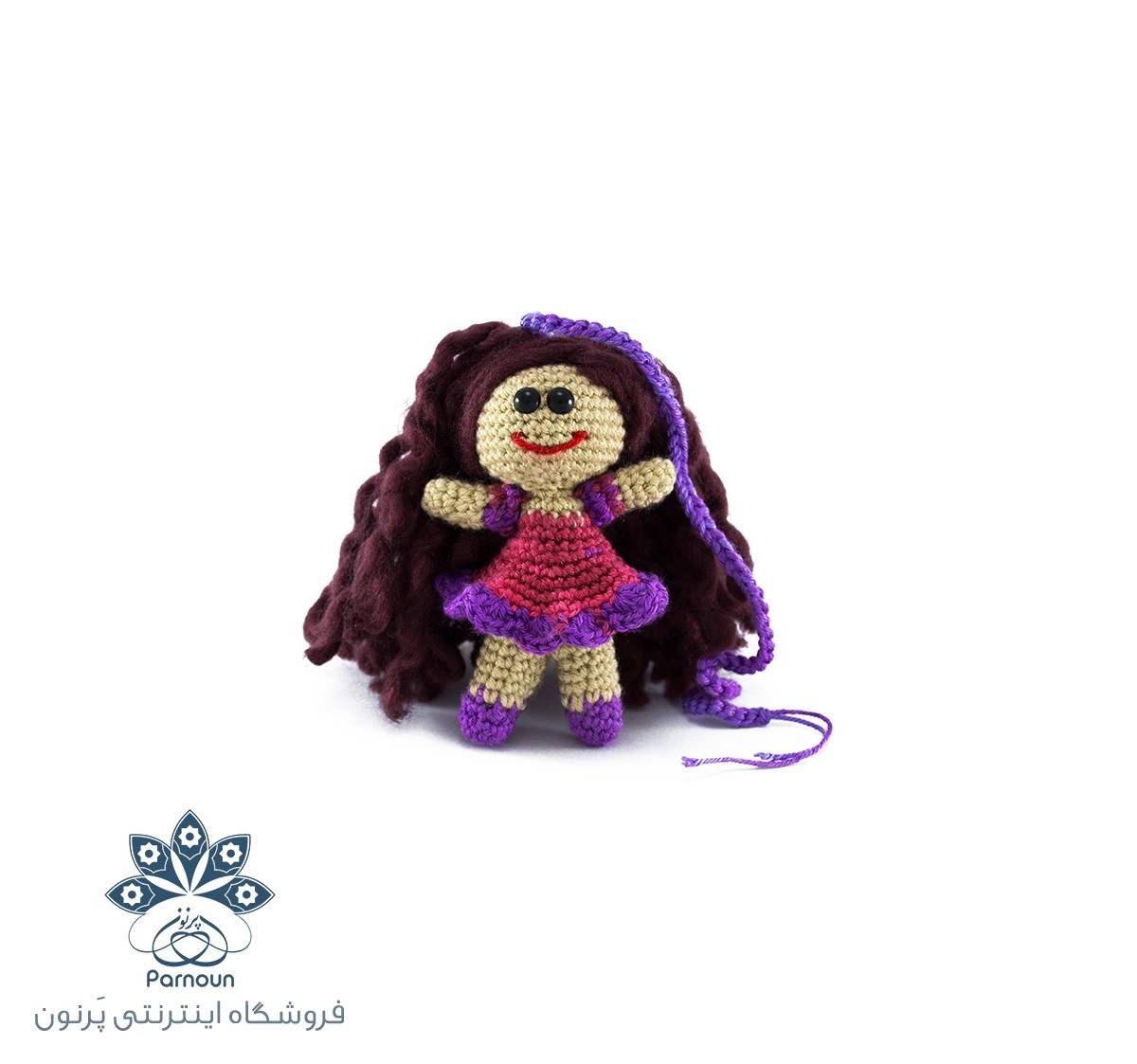 عروسک آویز دار قلاب بافی 9 سانتیمتری جذاب و دوست داشتنی دختر گیسو کمند، بافته شده با بهترین کامواهای ترک