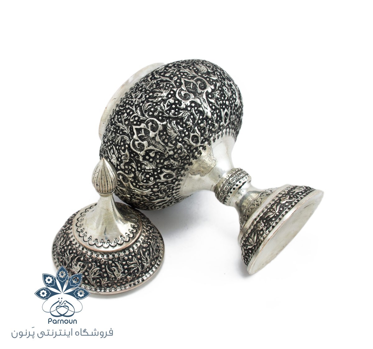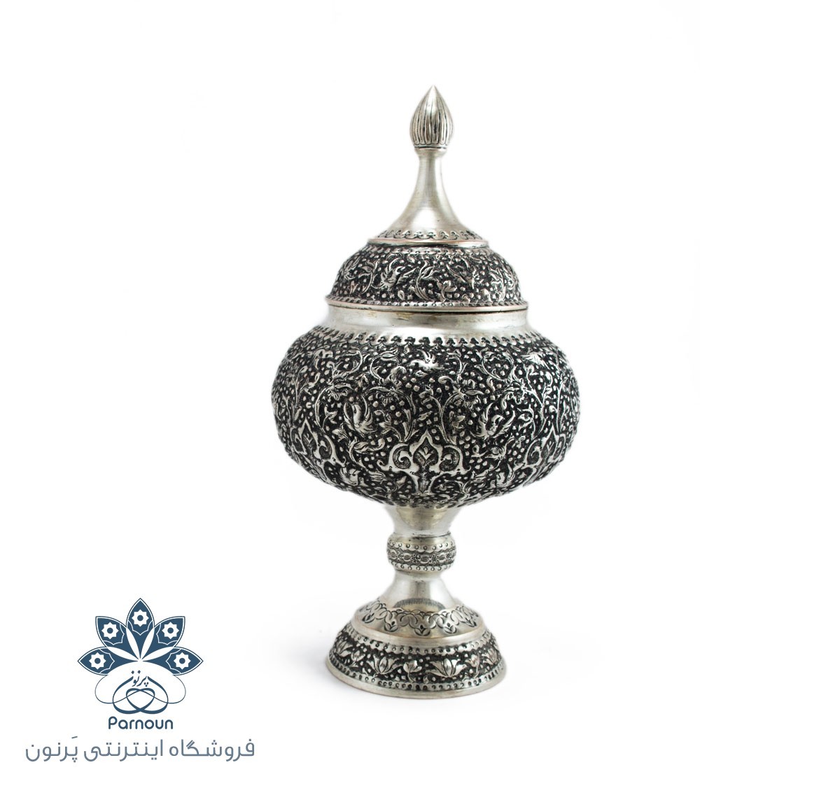 شیرینی خوری قلمزنی برنجی با آبکاری نقره، محصولی شیک و لوکس جهت پذیرایی