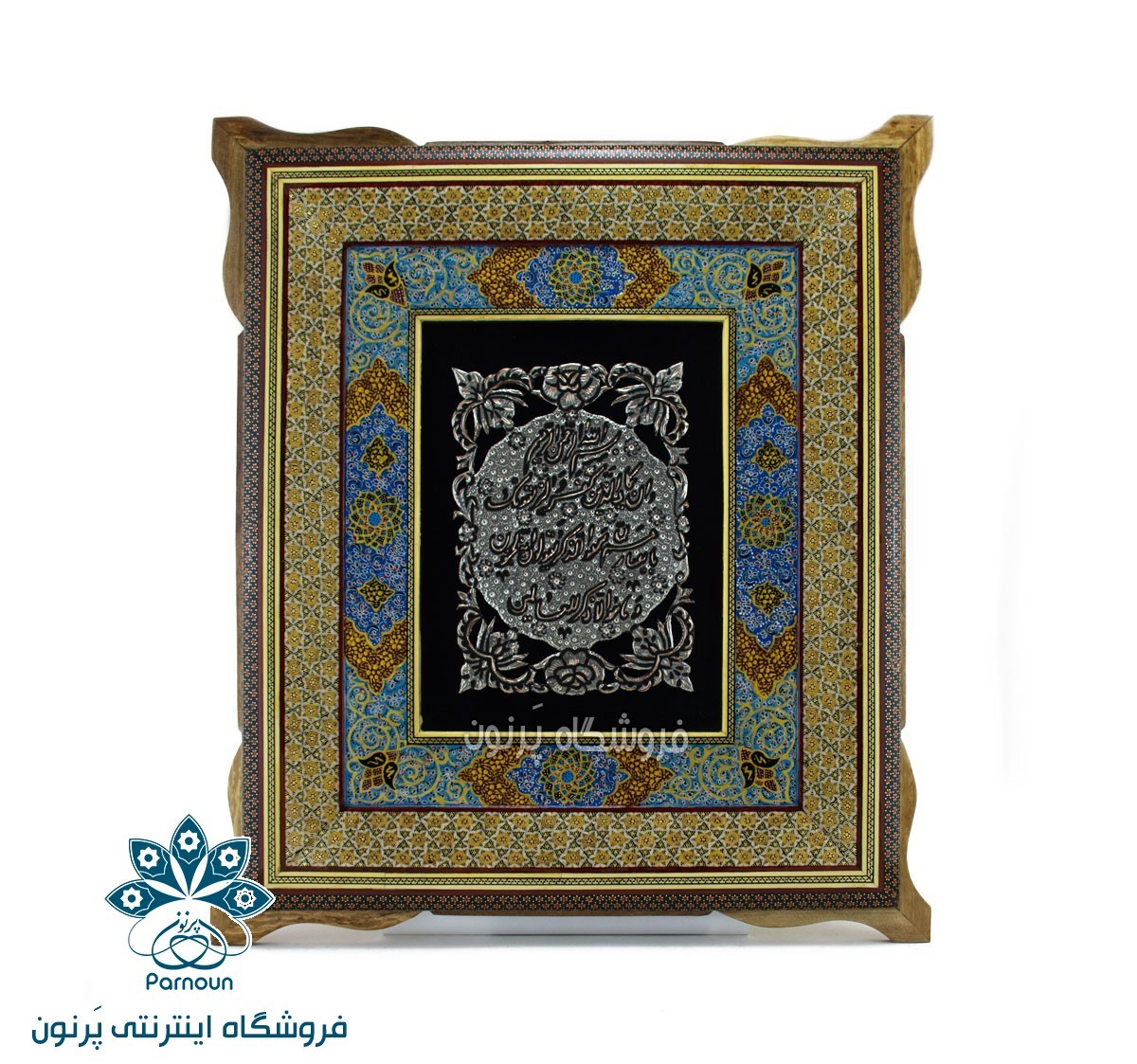 قاب چوبی طرح دار با تزیین هنر خاتم و نگارگری طرح ترنج اسلیمی