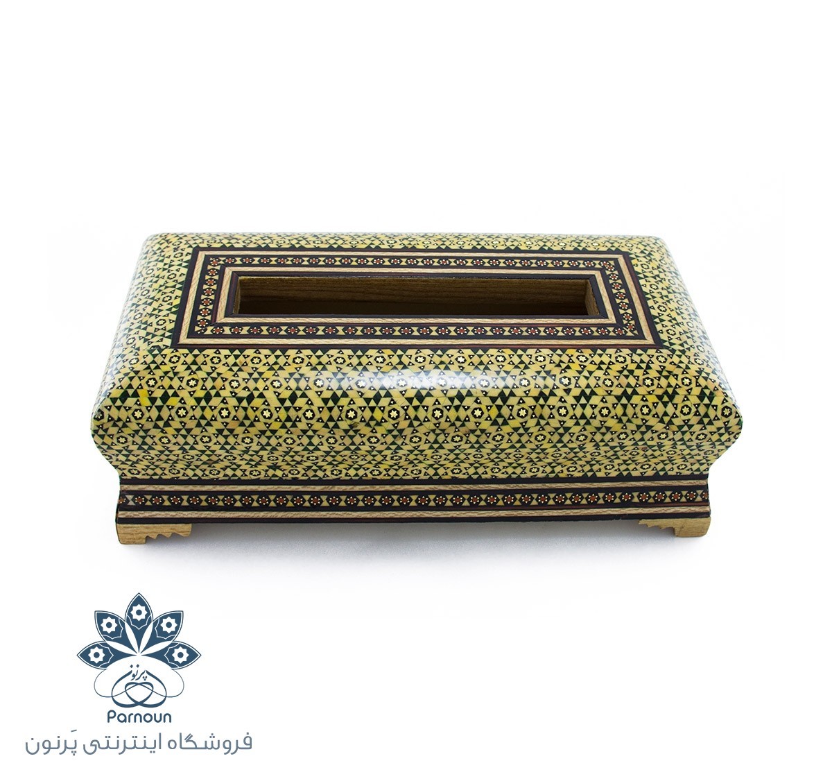 رنگ خاص کل ماشیجعبه چوبی کلینکس دستمال کاغذی خاتم کاری شده با طرح و رنگ خاص، زیبا بخش محیط منزل و کار