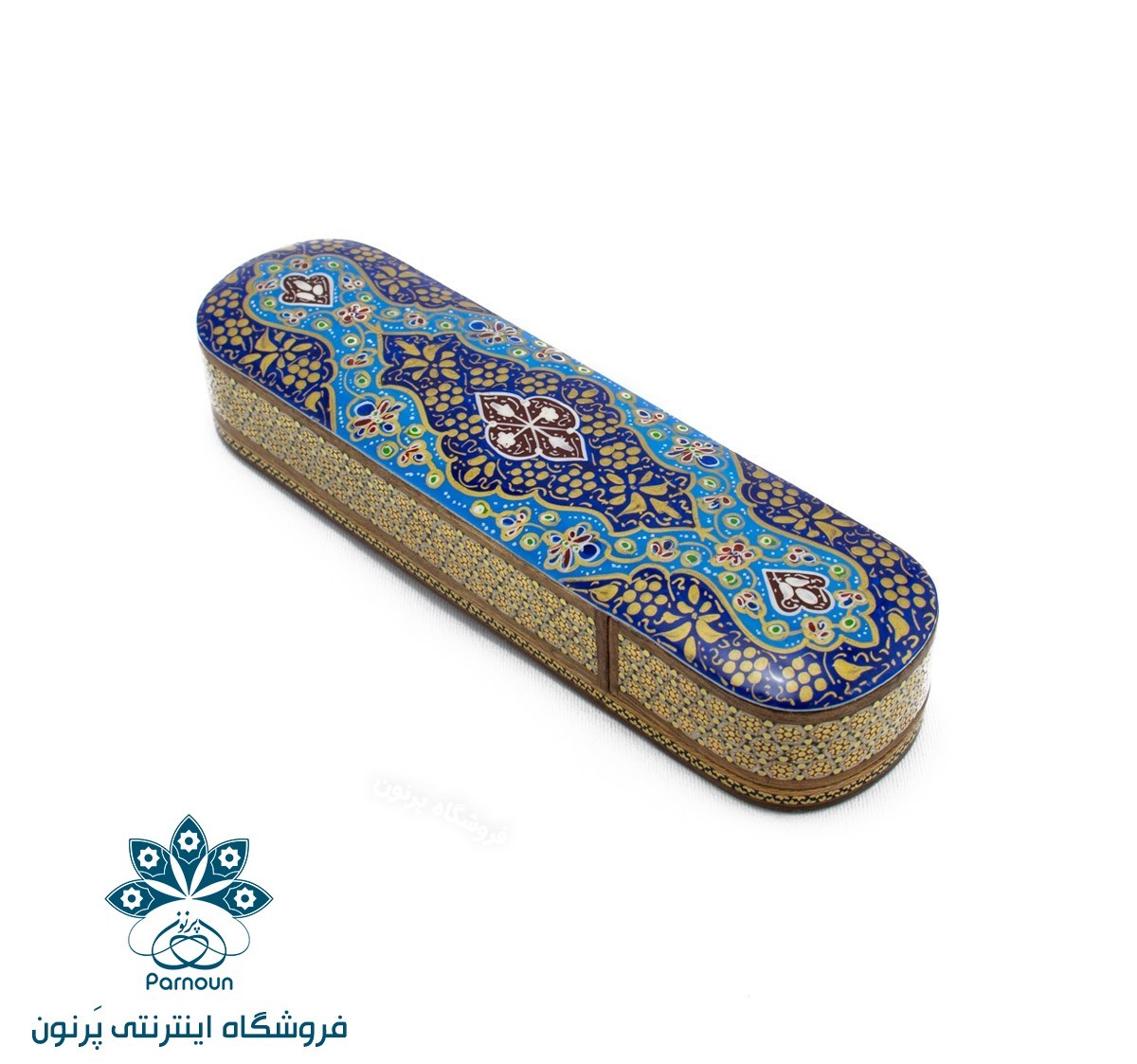 قلمدان چوبی تزئین شده با هنر خاتم و نقاشی تذهیب
