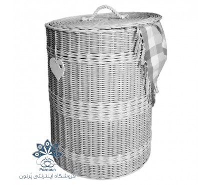 سینی حصیری درب دار که به طور کامل با دست بافته شده و برای لباسهای چرک یا کثیف مناسب است.