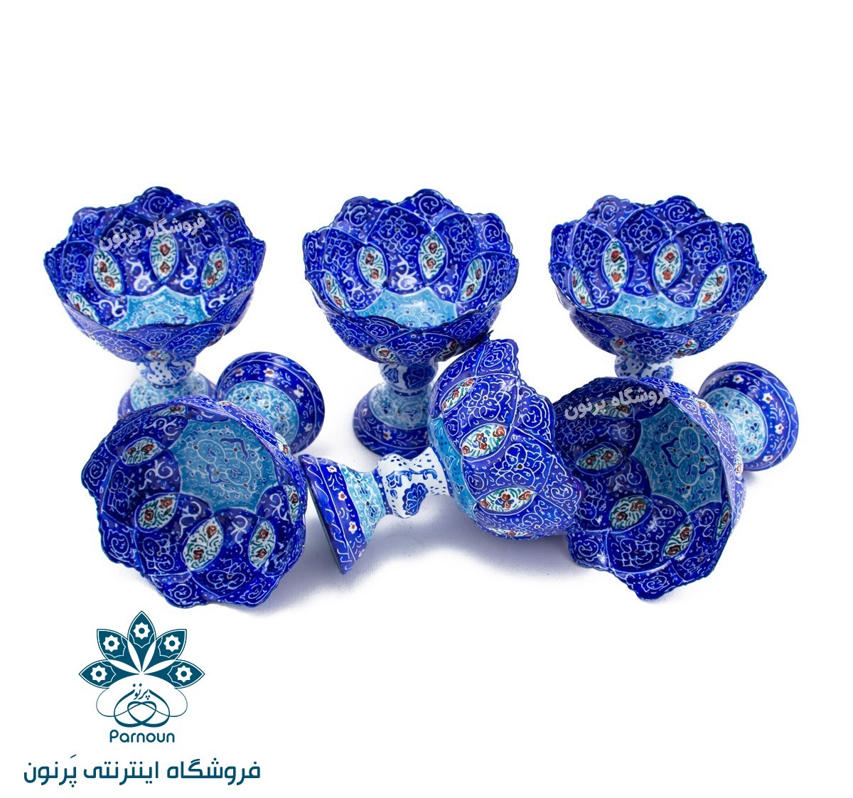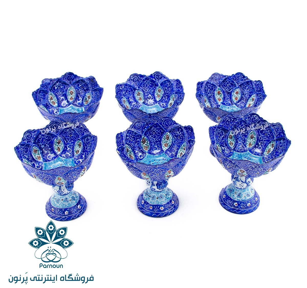 6 عدد ظرف پایه دار مینا کاری شده، مناسب برای استفاده در سفره هفت سین و همچنین استفاده برای سرویس آجیل خوری