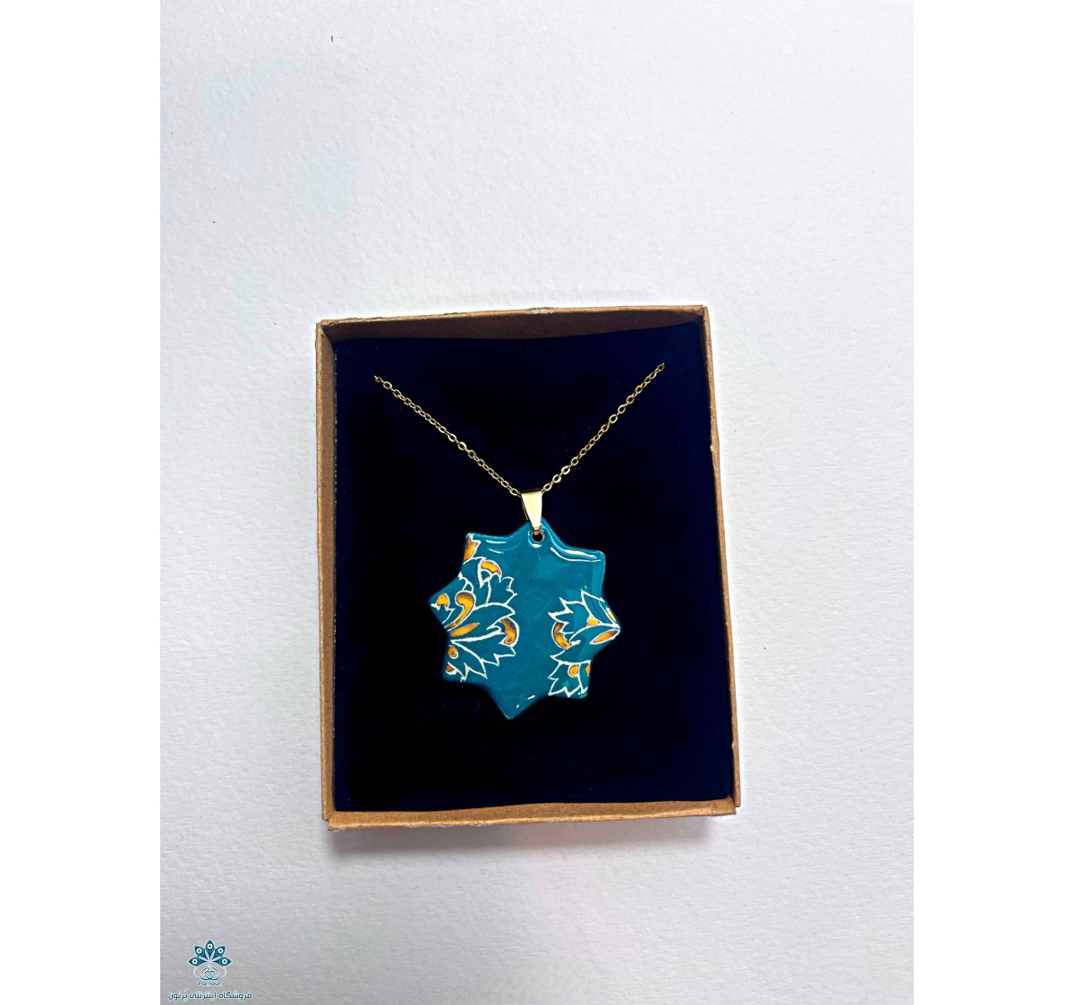 گردنبند سرامیکی دستساز با طرح شمسه سبز