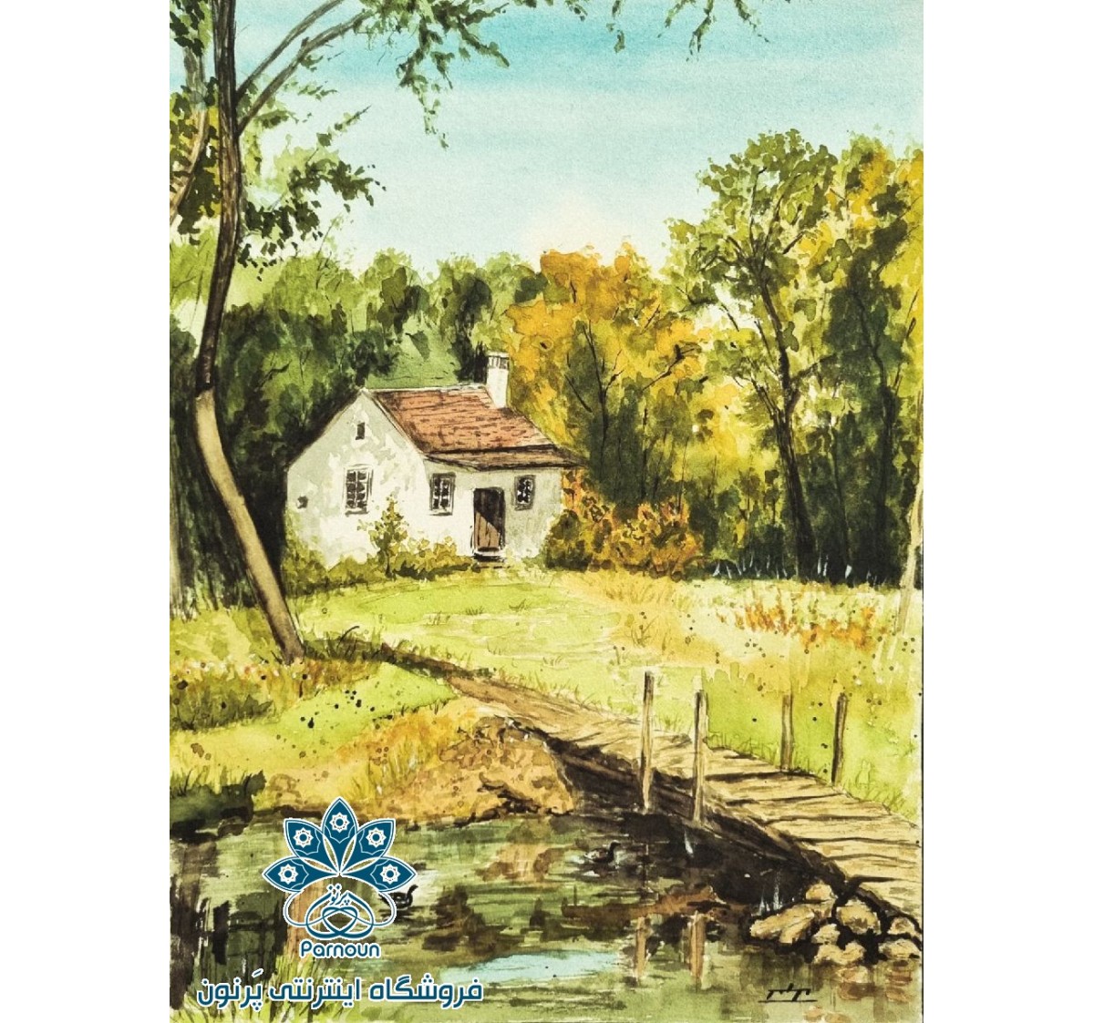 نقاشی آبرنگی از یک منظره زیبای روستایی