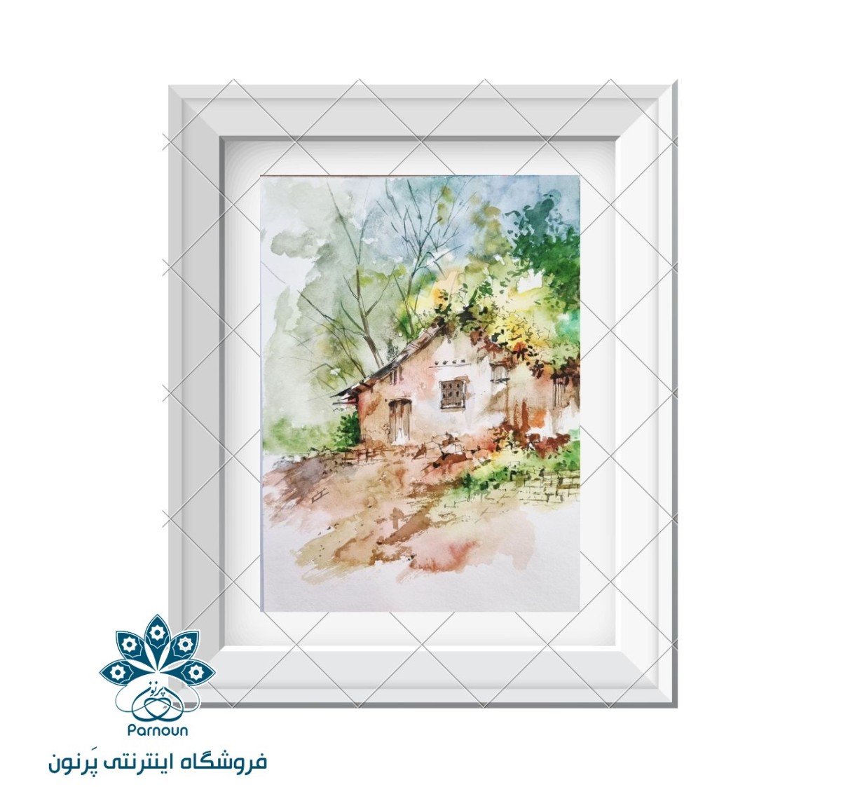 نقاشی آبرنگی "کلبه جنگلی" بر روی مقوای 100٪کتان کشیده شده و دارای بافتی زیبا و دلپذیر است.