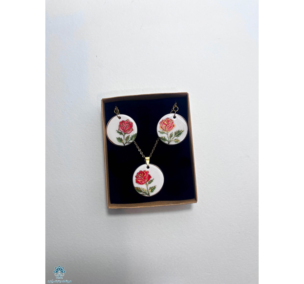 نیم ست سرامیکی دست ساز با طرح گل رز