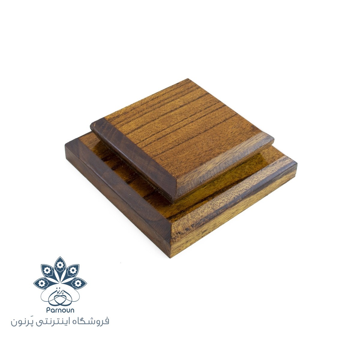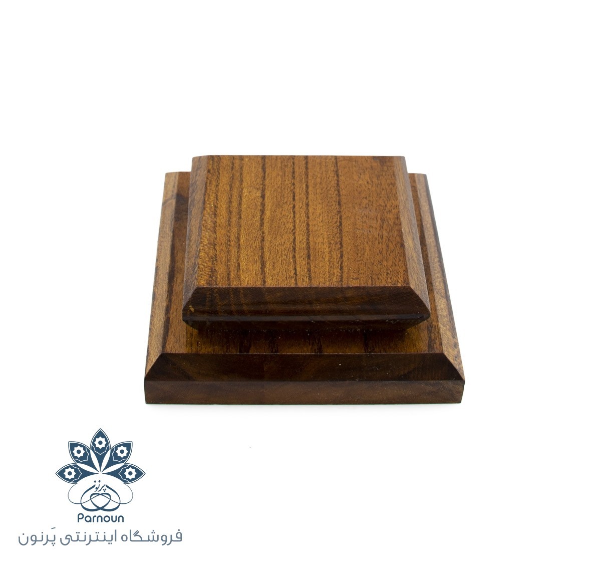 پایه تندیس چوبی دو سطحی با ارتفاع 4 سانتیمتری، این استند زیبا با قرار گرفتنه دو صفحه چوبی ابزار خورده زیبا روی هم ساخته شده است ، ابعاد صفحه زیری 11.5 و 10 سانتیمتر و صفحه رویی 8 و 6.5 سانتیمتر مربع است، این پایه چوبی زیبا مناسب برای قرار دادن انواع آثار هنری، لوح، مجسمه، گلدان های تزئینی، شکلات خوری و سنگاب میباشد. این پایه چوبی زیبا در 2 سایز متفاوت موجود است، با استفاده از پایه چوبی با شکل هندسی زیبا، جلوه صنایع دستی و آثار هنری شما در دکوراسیون و میز کار دو چندان خواهد شد
